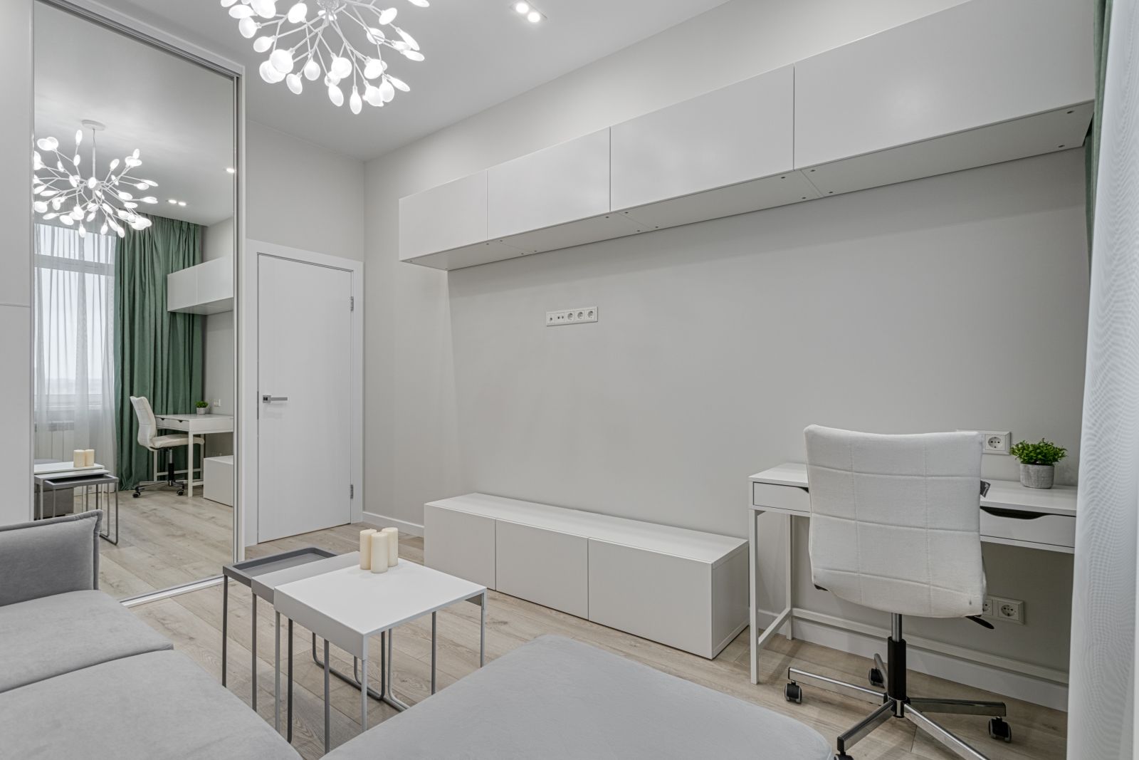 - В рамках данного проекта была осуществлена разработка и реализация комплексной системы мебельного оснащения для различных функциональных зон жилого пространства, включая кухню, гостиную, кабинет, две спальные комнаты, а также душевую и ванную комнату.